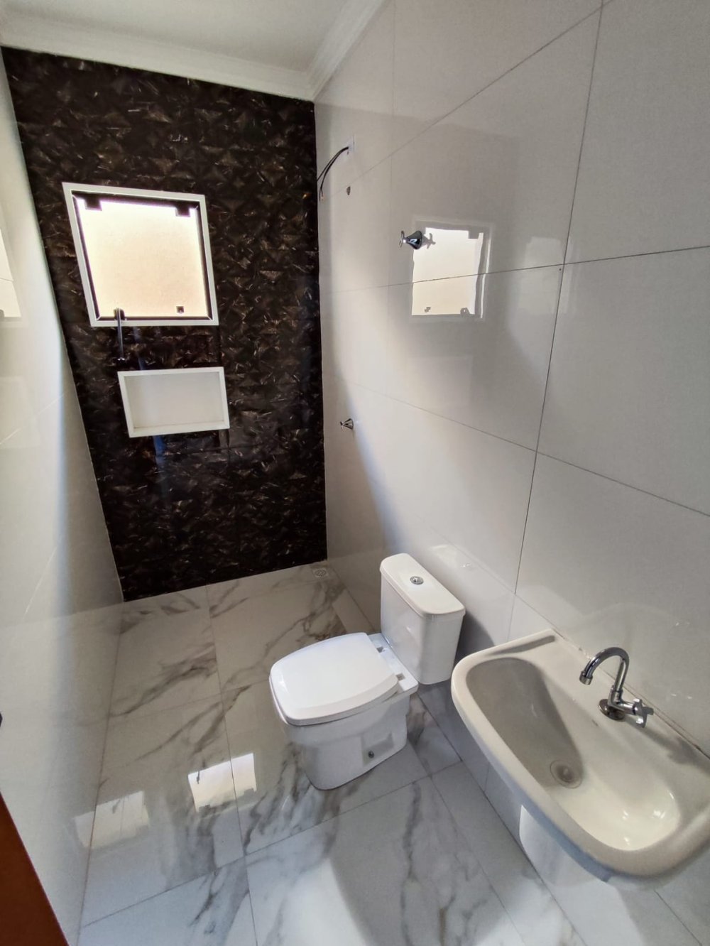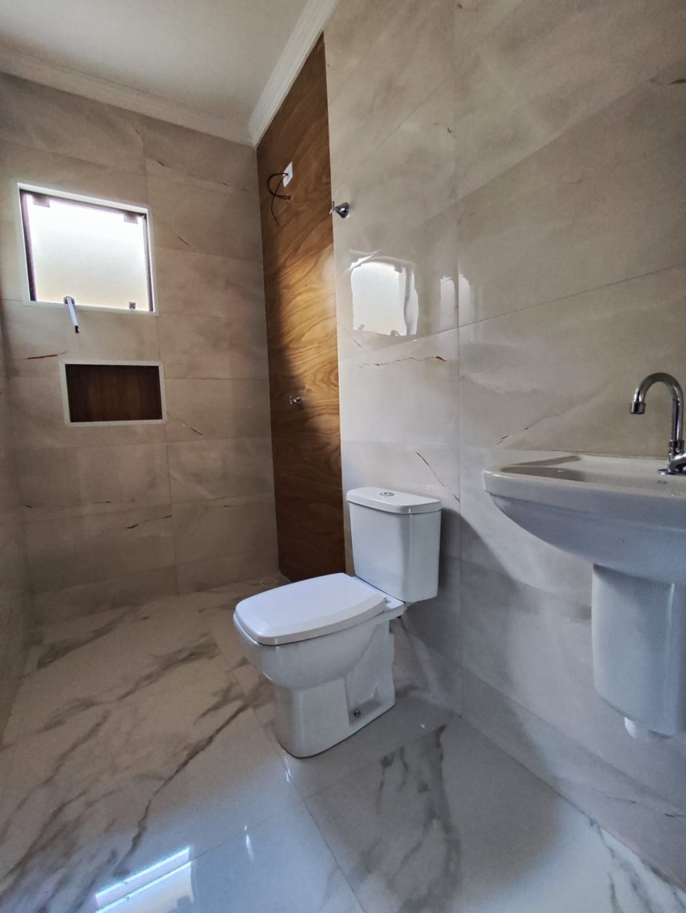 Com 130m² de área construída em laje e 233m² de área total, a casa apresenta ambientes amplos, bem distribuídos e com acabamentos de alto padrão, como piso em porcelanato, que une elegância, durabilidade e praticidade.