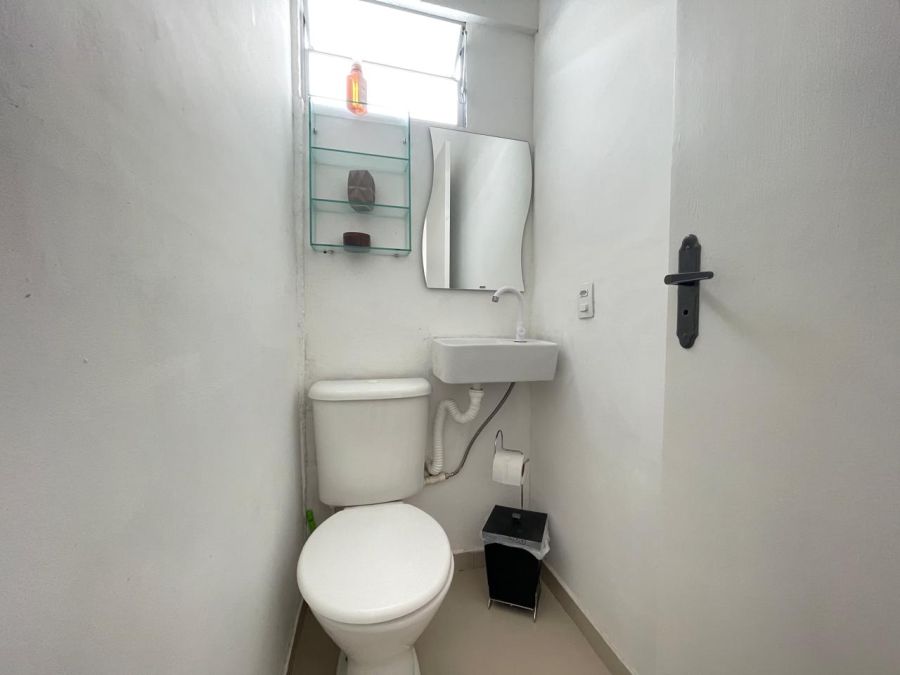 Banheiro social moderno e bem ventilado;