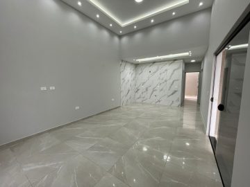 • Ampla sala de estar e jantar com pé-direito de 4,5m, rebaixamento em gesso e iluminação embutida