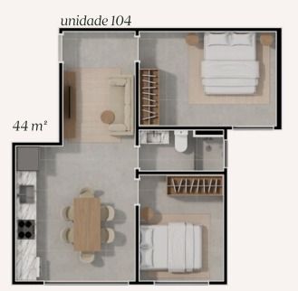- Unidade 104 – 44 m² | R$ 352.000,00