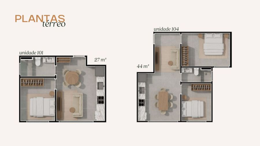 - Unidade 101 – 27 m² | R$ 260.000,00