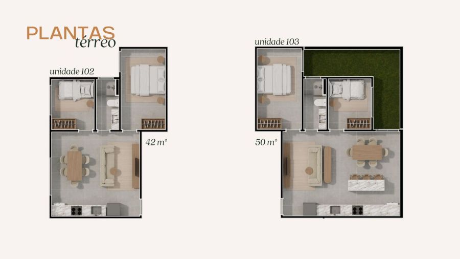 - Unidade 102 – 42 m² | R$ 336.000,00