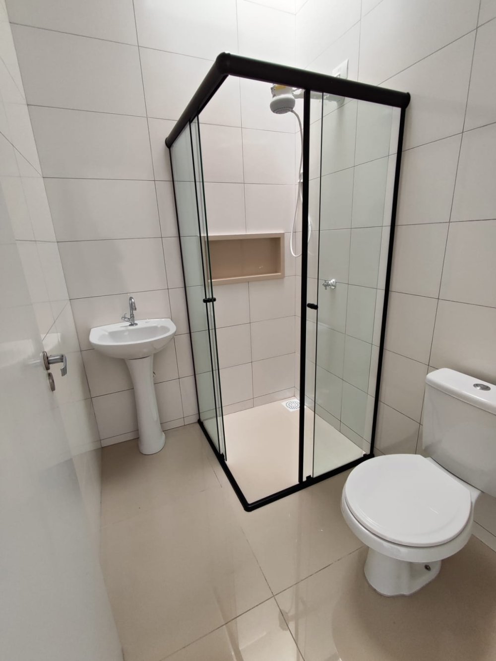 - Banheiro social com box blindex e ducha higiênica