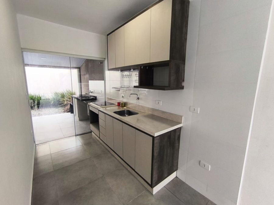 - Sala e cozinha integradas em conceito aberto, com boa iluminação natural