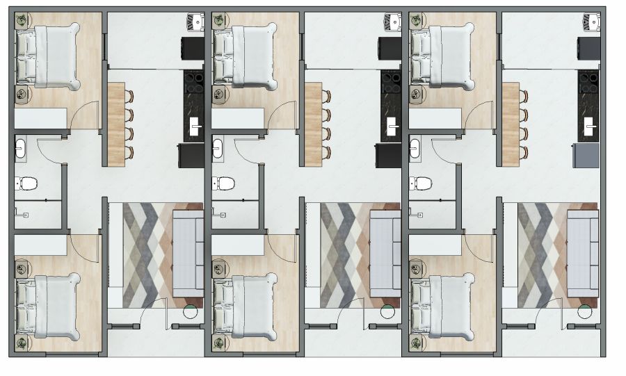 • 02 dormitórios com ótima ventilação e iluminação natural;