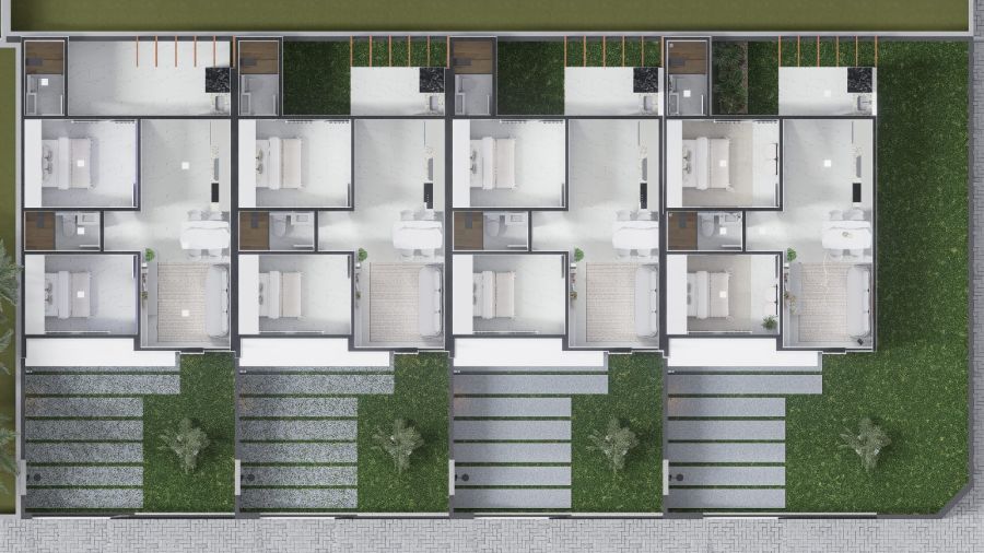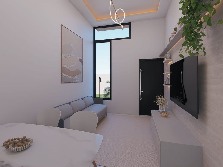 Com 55,29 m² de área construída em terreno de 99,75 m², a residência foi cuidadosamente planejada para oferecer ambientes funcionais, ótima ventilação natural e excelente aproveitamento dos espaços.