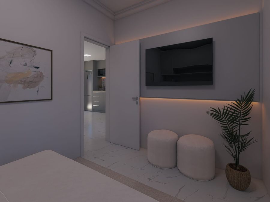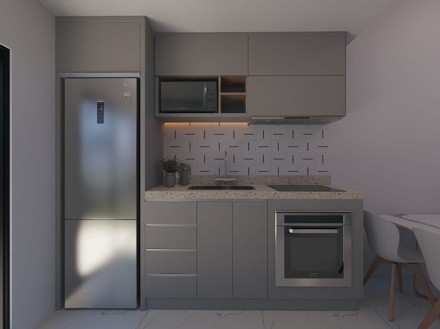 • Área social integrada com sala de estar, jantar e cozinha, proporcionando mais amplitude e convivência;