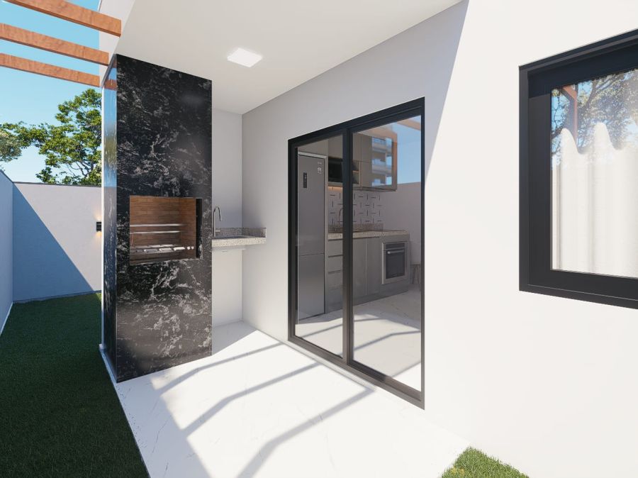 O projeto apresenta arquitetura contemporânea, com fachada moderna e acabamento diferenciado. Construção em laje com concreto usinado, esquadrias e portões em alumínio preto, porta principal em lambril com puxador em inox e portas internas com acabamento laqueado.