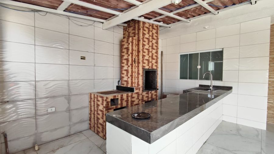 • Área gourmet nos fundos com churrasqueira, fogão a lenha e bancada em granito — perfeita para momentos de lazer e confraternizações