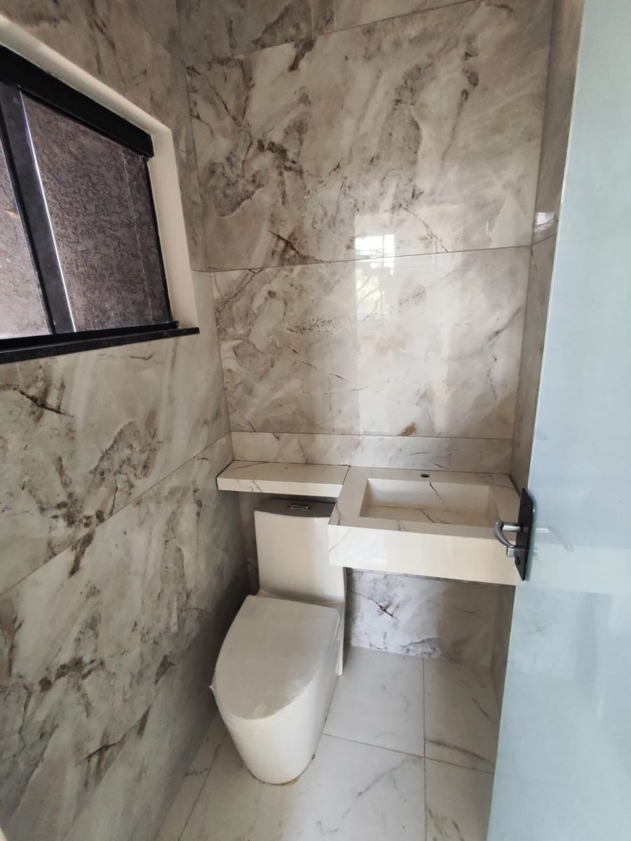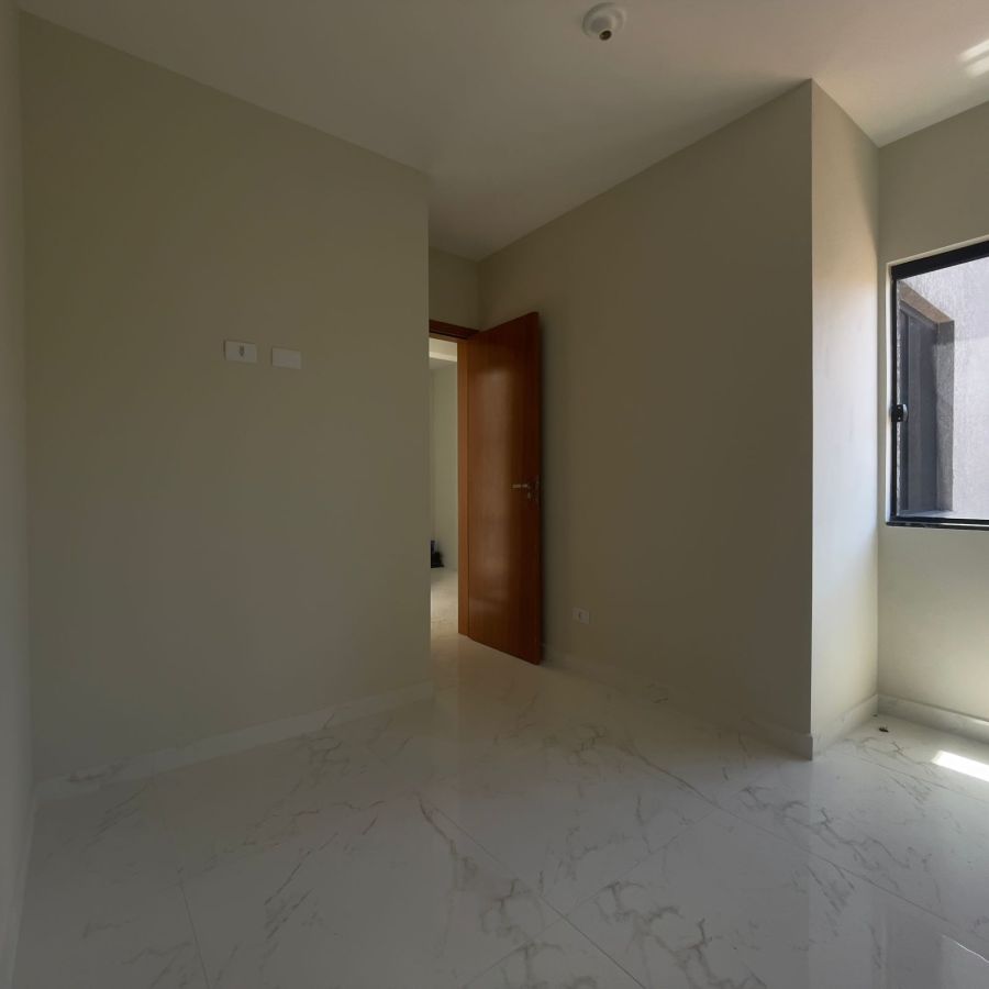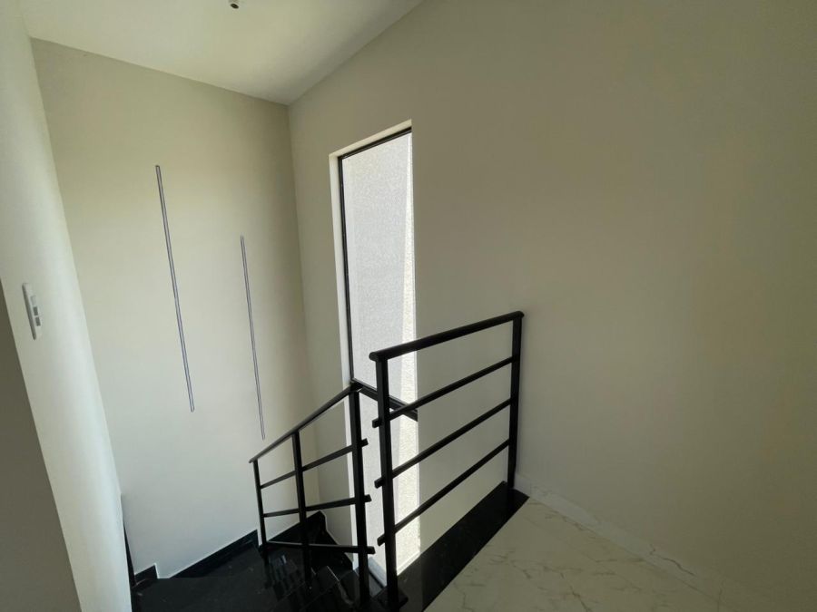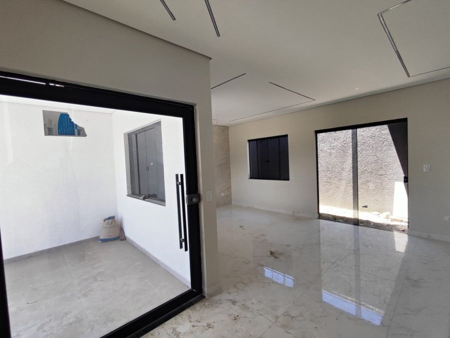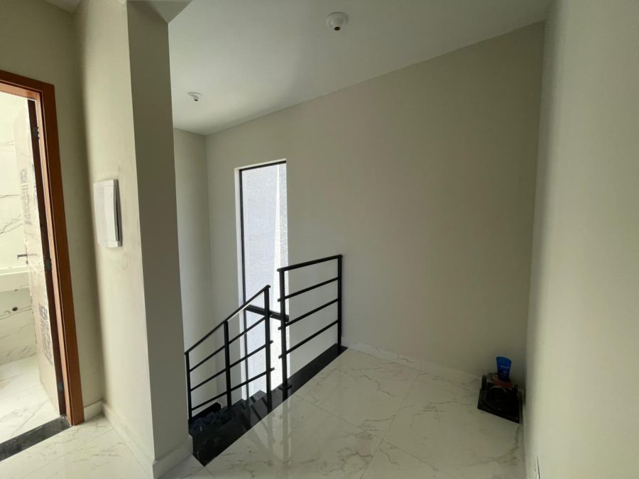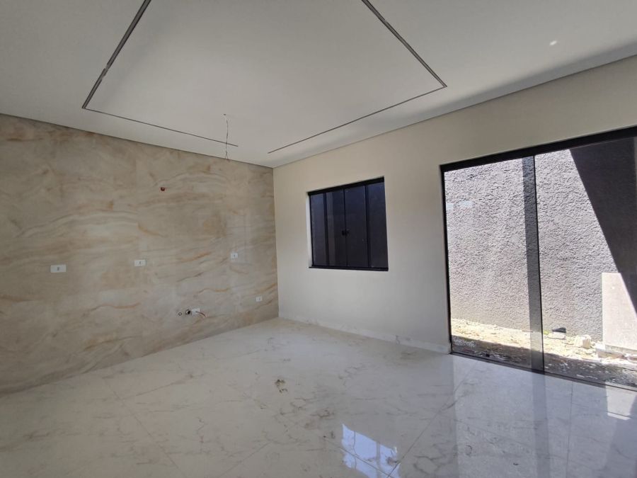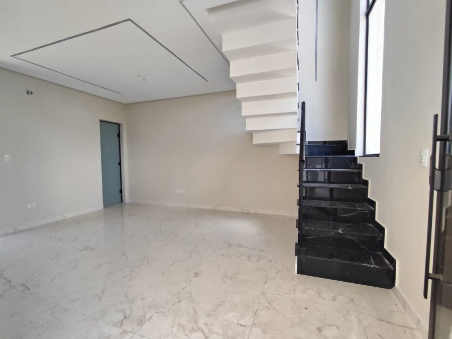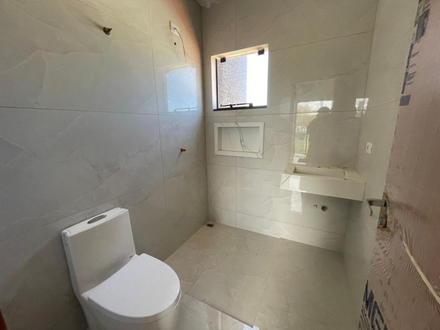 Em laje , piso em porcelanato, aberturas e portão em alumínio, rua bolquetada, saneamento básico.